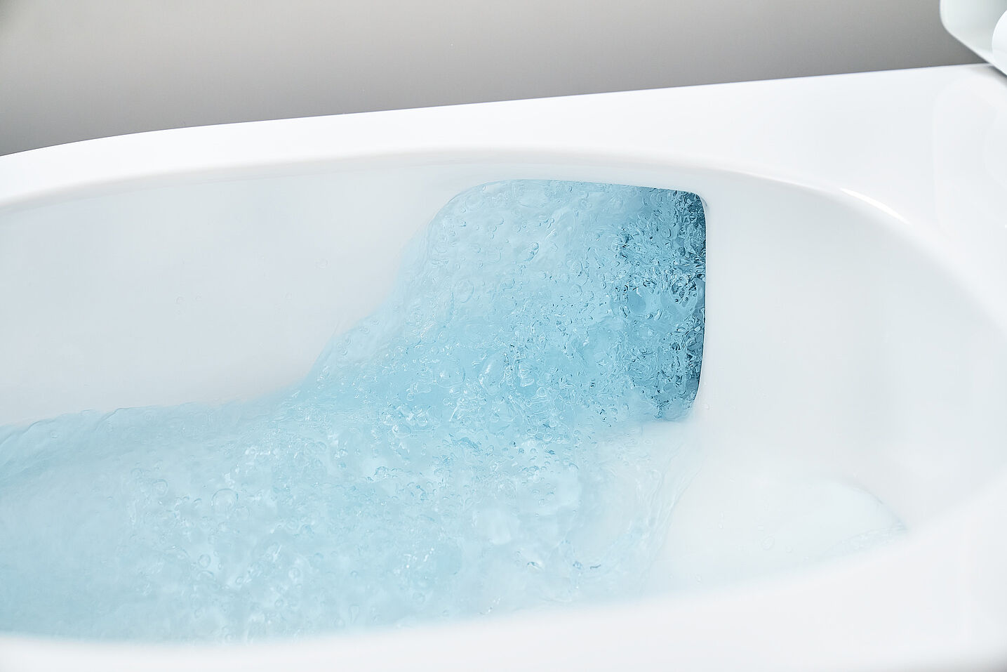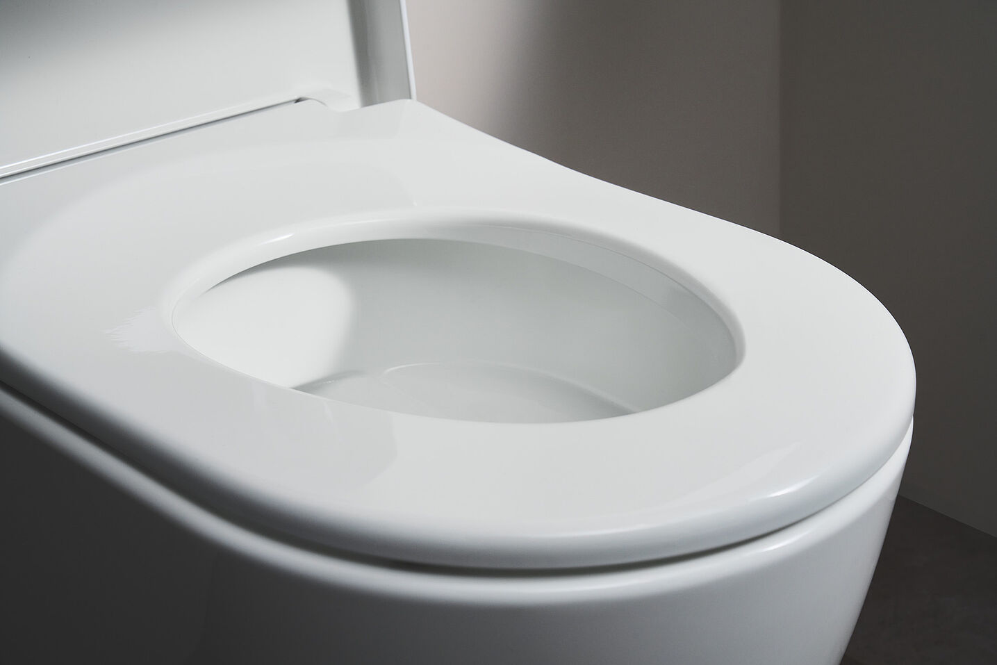 Il design senza brida, con interno minimalista, senza gradino nel sifone, riduce notevolmente la necessità di pulizia. Inoltre, il nuovo smalto ceramico DuraShield® con effetto antibatterico garantisce standard di igiene e pulizia ottimali. In sole 24 ore, lo smalto protettivo 2 in 1 rende i batteri innocui al 99,99 % grazie al suo strato di ioni metallici caricati positivamente. La struttura liscia e priva di pori garantisce che le particelle di sporco e calcare non possano aderire alla superficie e quindi scivolino via facilmente da sole. Ciò garantisce pulizia e sicurezza durature.